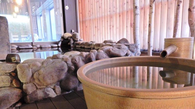 -Äkta japansk onsen – inomhus och utomhus – med naturligt varm mineralrik källa som mjukar upp trötta ben.